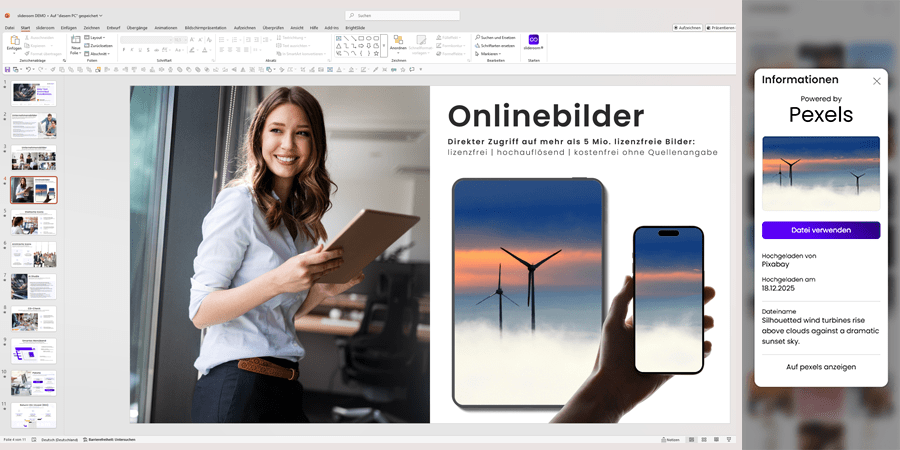 After your upload, all media can be used by your colleagues directly in PowerPoint.